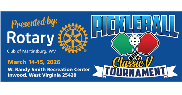 This is the FIFTH year that the Rotary Club of Martinsburg has the phenomenal opportunity to embrace and maintain its established “footprint” for this new, exciting “fundraiser” via Pickleball Tournaments/Brackets! As you know, this paddle sport is trending throughout the U.S. and many foreign nations! Many other Rotary Clubs throughout the U.S. are using Pickleball as a fundraiser as well. Pickleball has no economic, financial, nor social barriers among its players. Regionally, many players from our geographic area have traveled to play in (sanctioned/unsanctioned) tournaments for the challenge and fun of the sport! Therefore, the Rotary Club of Martinsburg has engaged with PickleballTournaments/Brackets.com to bring a higher level of tournament play to the area and to further draw players to our locality! Rotary has rallied to fill the void by establishing high level annual Pickleball tournaments in the Eastern Panhandle of West Virginia, since 2022.The Rotary Club of Martinsburg is continuing its fourth year for success, thanks to the Players, Sponsors, Volunteers, Staff of Parks & Recreation, and Managers of Pickleball Tournaments/Brackets, since it has initiated its “inaugural” Pickleball Tournament! The Rotary Club of Martinsburg celebrates its past FOUR year success of this “fundraising” event, the annual “Classic” ROTARY CLUB of MARTINSBURG (WV) - PICKLEBALL TOURNAMENT(s), that has raised approximately $97,000!