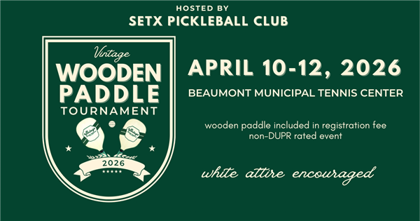 Dust off your whites, step back in time and grab a classic paddle — it’s time for the Vintage Wooden Paddle Tournament, hosted by the SETX Pickleball Club! This one-of-a-kind event brings pickleball back to its roots with old-school wooden paddles, great rallies, and a whole lot of personality.